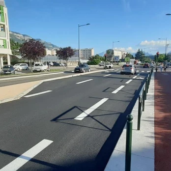 Sur le secteur étudié, nommé « traversée d’Aix les Bains », EPODE a apporté son expertise dans le réaménagement de cette voirie urbaine à fort trafic sur un linéaire d’environ 200 mètres pour y  insérer une voie verte en site propre.