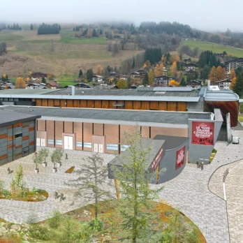 Depuis 2014 le Palais de Megève ne cesse de s’agrandir et repense totalement son organisation. Aujourd’hui le complexe s’impose comme le plus grand complexe de loisirs indoor des Alpes avec ses 30.000 m² de surfaces. En 2024, le Palais aménage une nouvelle salle de spectacle, de congrès et de séminaire. Les espaces extérieurs ont peu évolué et ne sont plus adaptés à l’aménagement intérieur du Palais. En effet, l’entrée principale se retrouve isolé et peu visible, le parvis de la nouvelle salle de congrès n’est pas adapté à ce type d’évènement, et l’ancienne entrée avec son escalier monumental est toujours identifiée comme l’entrée principale par le visiteur.